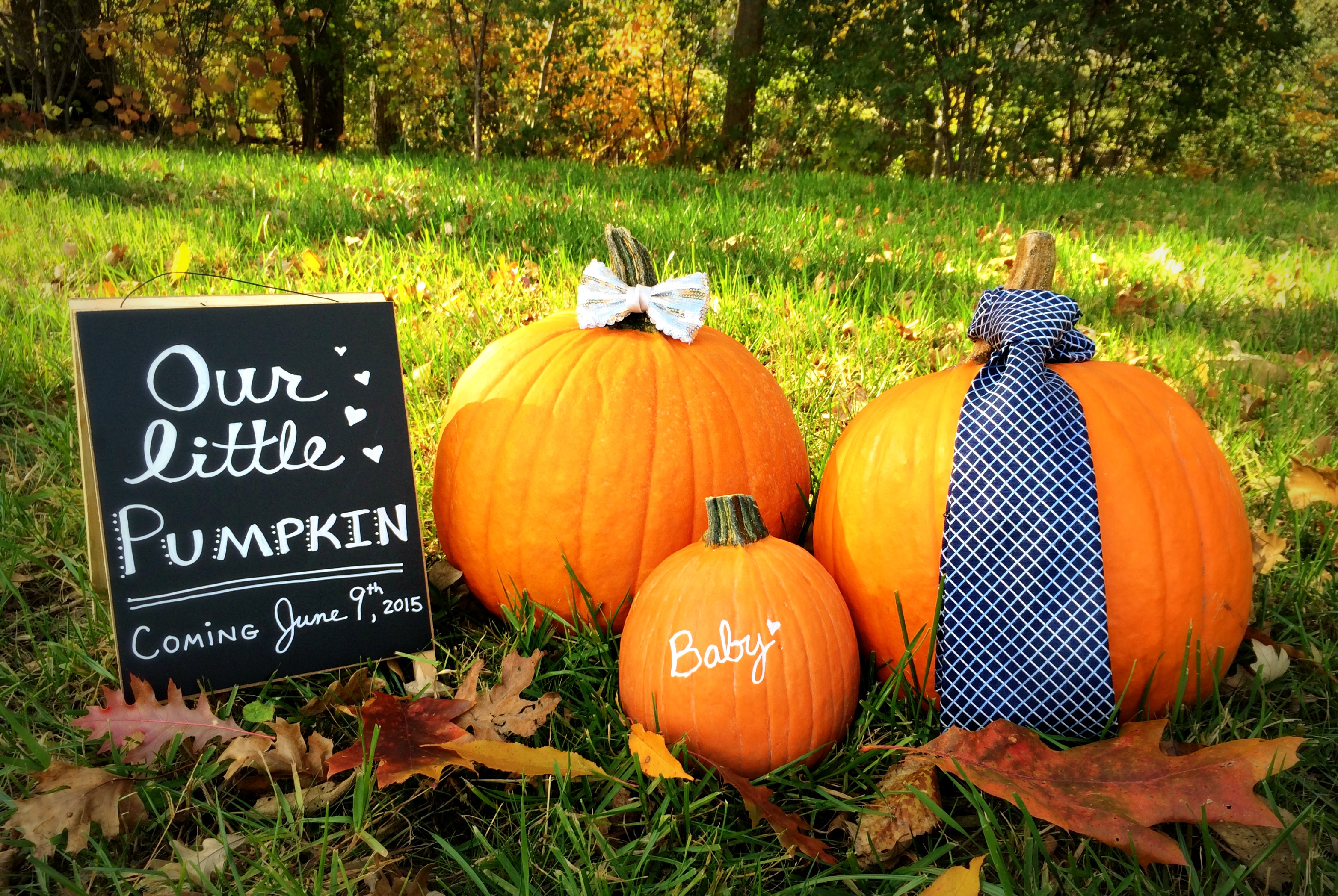 This unique idea features a trio of pumpkins: a mom pumpkin, a dad big pumpkin, and a soon-to-be baby pumpkin. Delight in the charming representation of your growing family, each pumpkin symbolizing a special role. Captivate the hearts of your loved ones with this adorable concept, showcasing your excitement and anticipation for the arrival of your precious bundle of joy.
